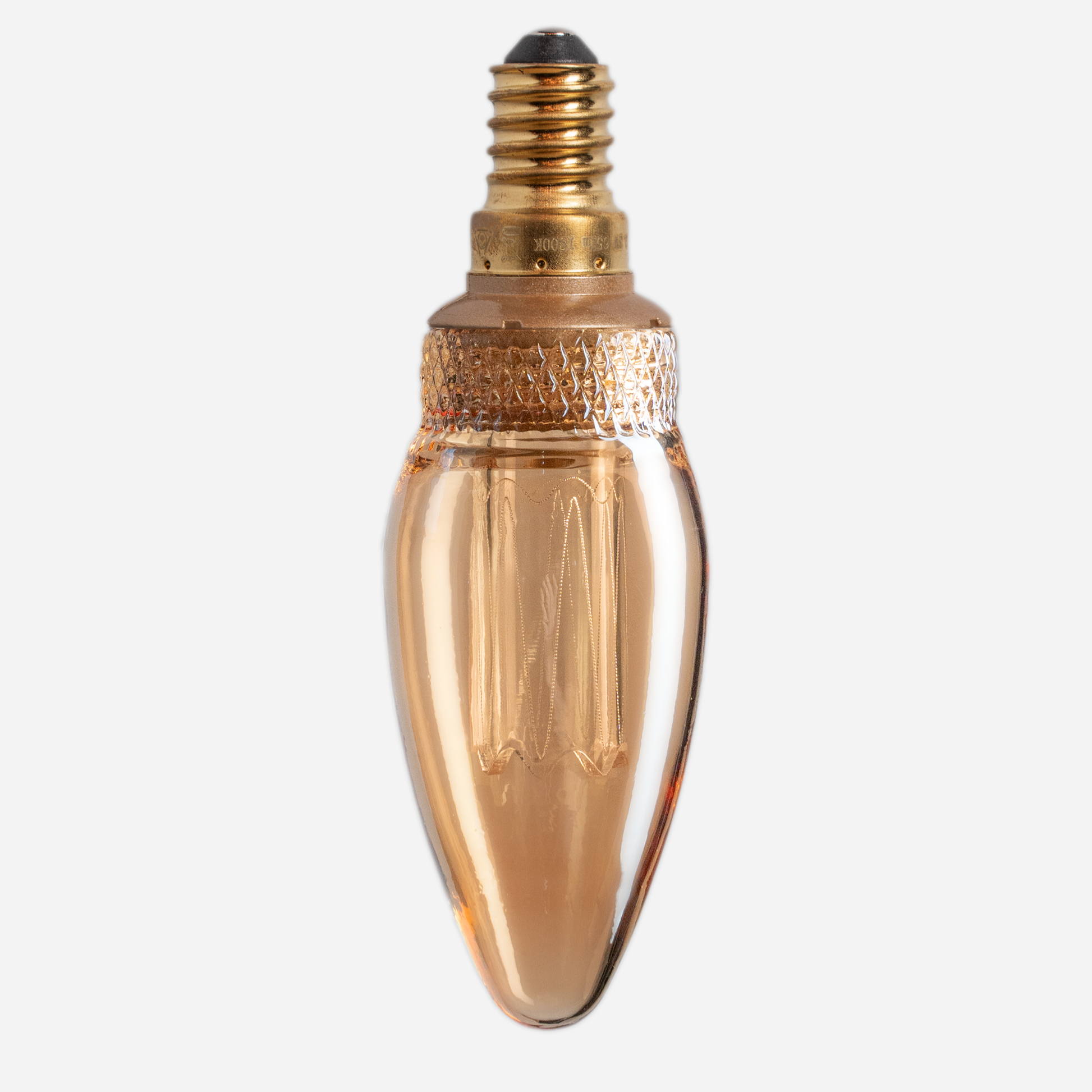 This elegant bulb features stylish amber glass, creating a warm and inviting glow. A striking LED laser filament complements the familiar globe shape, effortlessly combining modern design with functional elegance.