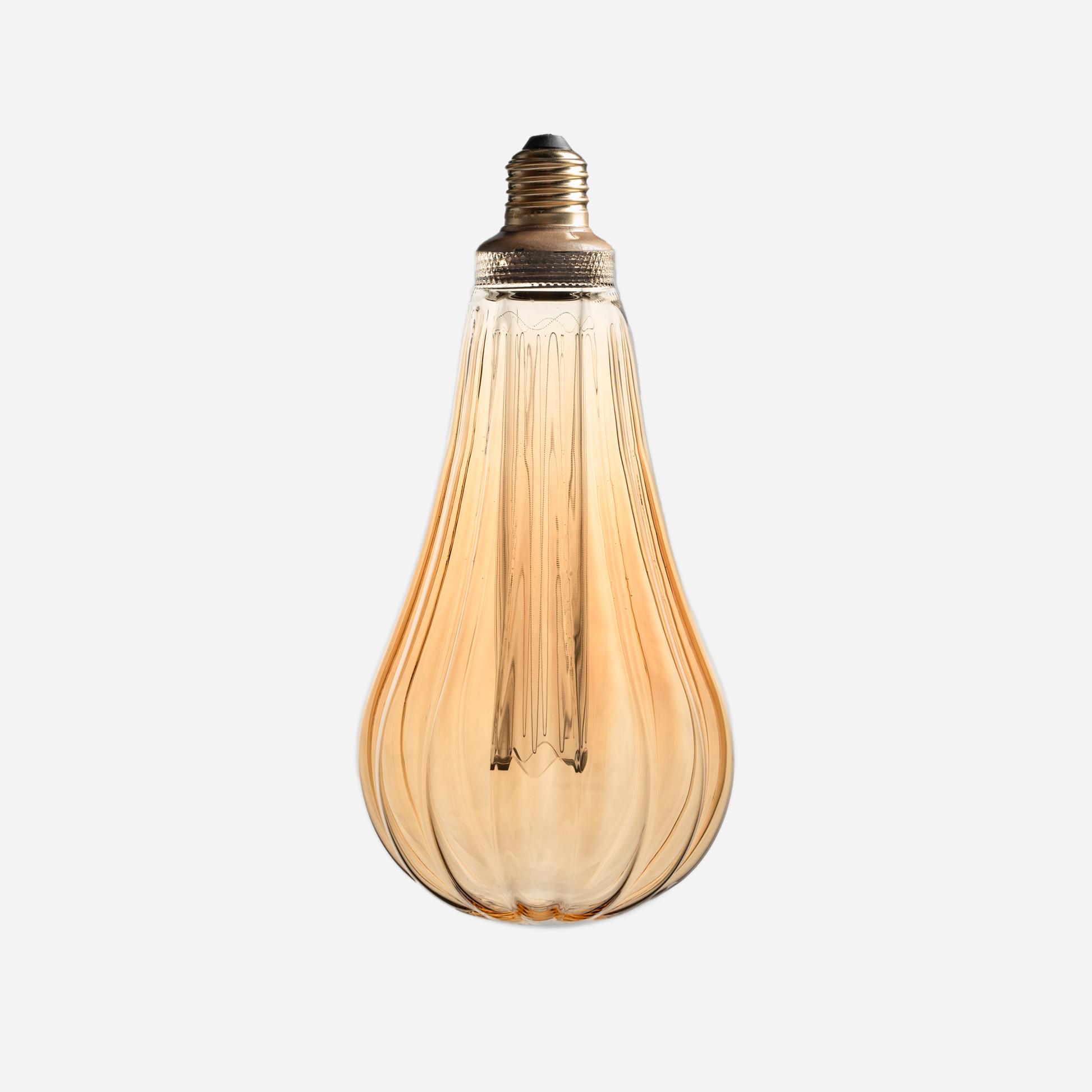 This striking light fixture features bespoke amber glass, with a distinctive LED laser filament complementing the sleek design.